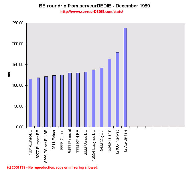 Main points this month: KPN-BE and Eunet-BE are back to quality levels much more normal, so does PSInet-EU-Belgium. We also measure a much better score for Skybel, the path has changed and is seems much better.