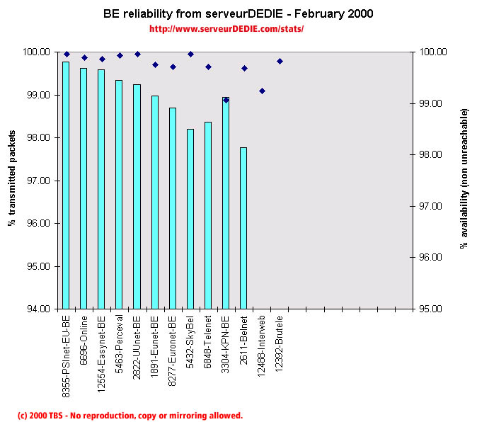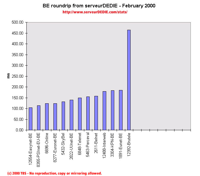 Interweb was measured having allot of packet loss at certain time periods and ses its performance decline. Brutele maintains its previous months bad performance. Otherwise please note the good performance of PSInet and the performance increase of Easynet and Skybel.