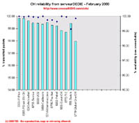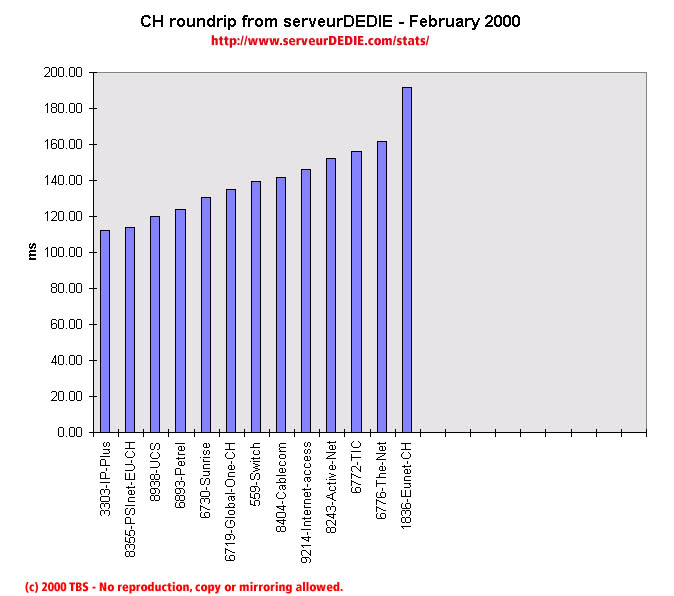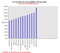 Our roundrip graphic displays the mean roundtrip time in milli-seconds. This graphic should not be read and analysed alone but with the availability chart above. Alone this chart does not mean much.