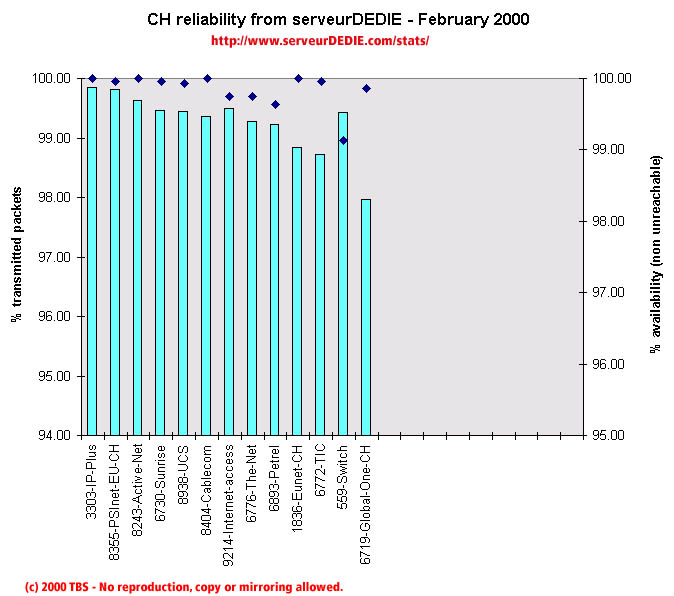 We noted an important performance increase in February. Eunet-CH has increased performance so as Sunrise. Other operators maintain performance levels close to last month. The overall national performance is very high.