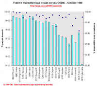 Record battu! Octobre 1999 est le meilleur mois depuis le début de ces statistiques avec une moyenne de 97.72 unités TBS! Dans le détail évidement il n'y a pas que des hausses.