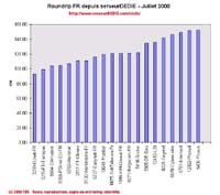Coté baisses on notera Cybercable (notre palme du mois de Juin), Proxad et Frontier qui tout 3 ont eu des problèmes avec leur taux de perte de paquets. Les deux autres baisses sont dus à des problèmes de disponibilité: Easynet-FR et PSInet-EU-FR.