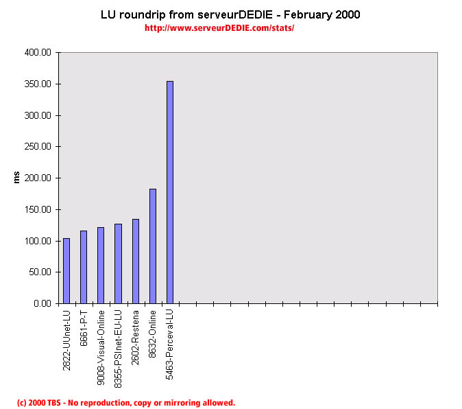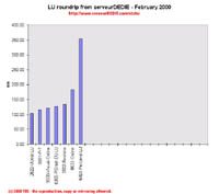 Our roundrip graphic displays the mean roundtrip time in milli-seconds. This graphic should not be read and analysed alone but with the availability chart above. Alone this chart does not mean much.