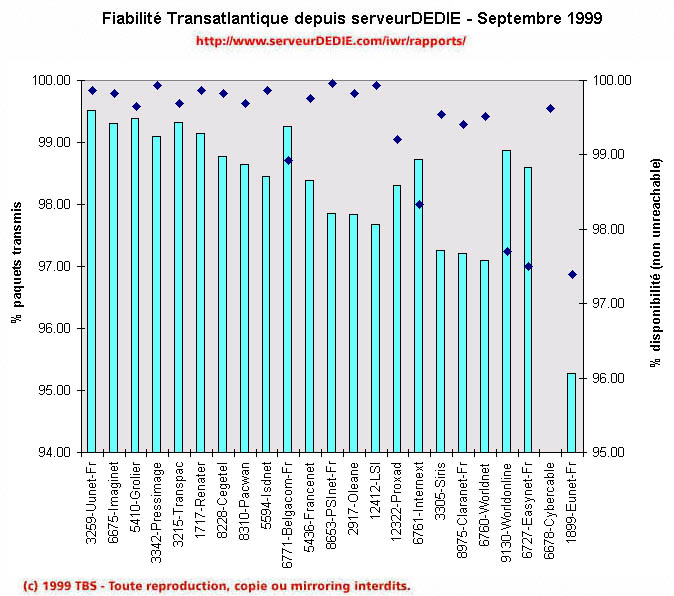 La palme de nos statistiques de septembre revient à UUnet France du groupe MCI-Worldcom. La série noire d'août est oubliée et l'opérateur obtient le meilleur taux de paquets reçu et la meilleure stabilité.