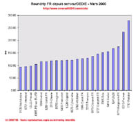 Y'aurait-il une corélation entre le cours des valeurs "nouvelle économie" à la bourse de Paris et nos statistiques? En tout cas on peut parler de correction pour nos chiffres de Mars, perte de plus d'un point de moyenne!
