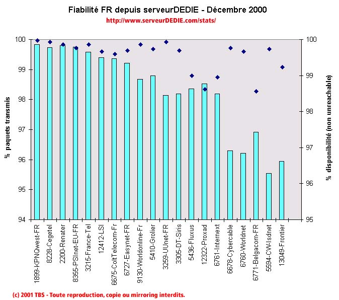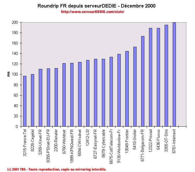 Les baisses franches à noter sont celle de Fluxus, d'Internext, de Belgacom-FR et dans une moindre mesure, de Proxad. Ces opérateurs ont subit des perturbations liées à Teleglobe Europe qui s'est traduit par de l'indisponibilité et des roundtrips importants dans le dernier tiers du mois.