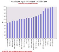 Il y a peu de hausses en décembre. On notera seulement la progression de Cegetel en haut de tableau et celle de DT Siris qui se reprend après un mois de Novembre en demi-teinte et un début de mois de décembre moyen (roundtrip élevé à cause d'une sous-capacité de transit externe; le transit via DT ne semble pas être en service opérationnel).